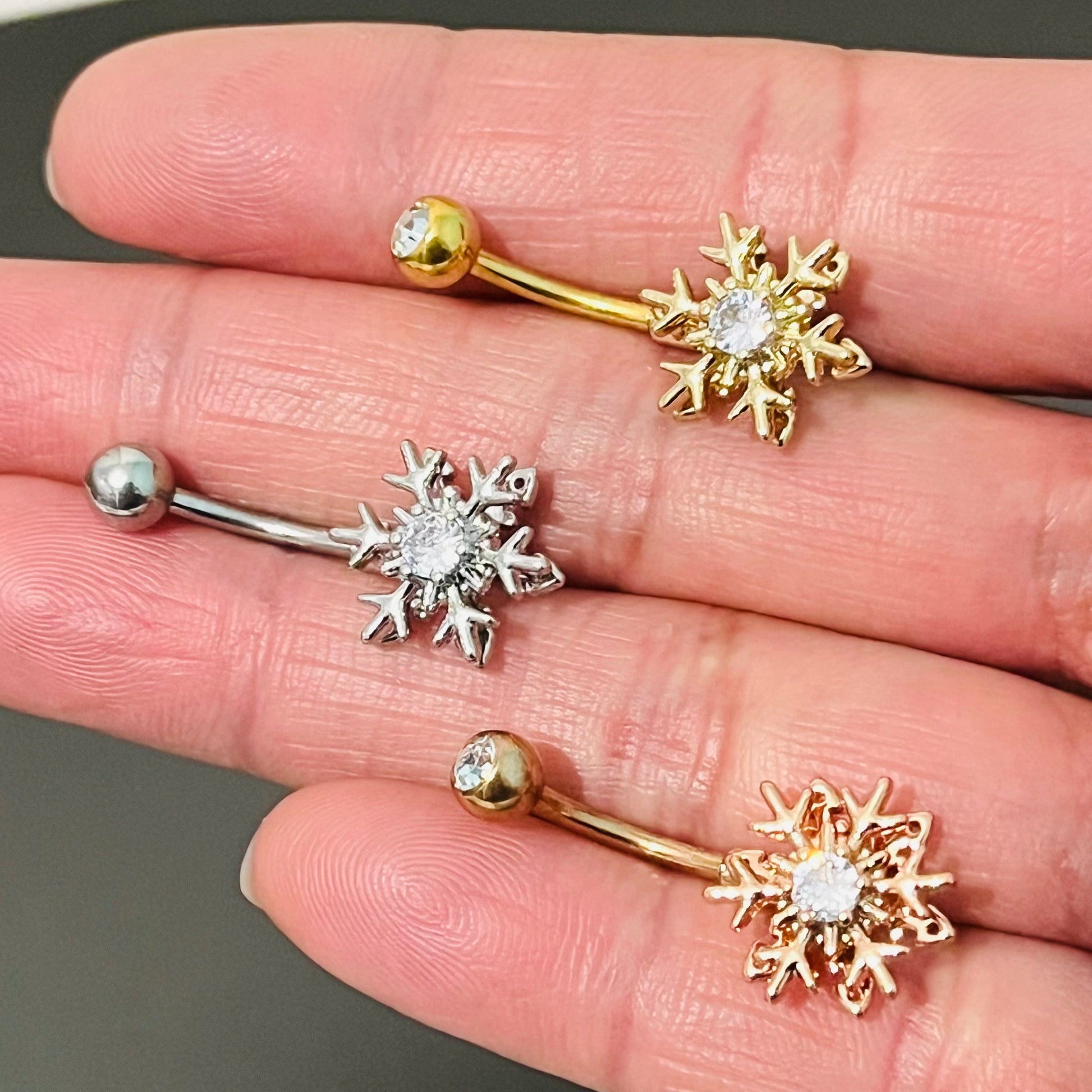 This is an unique design belly bar, top part of the snowflake is spinning around.