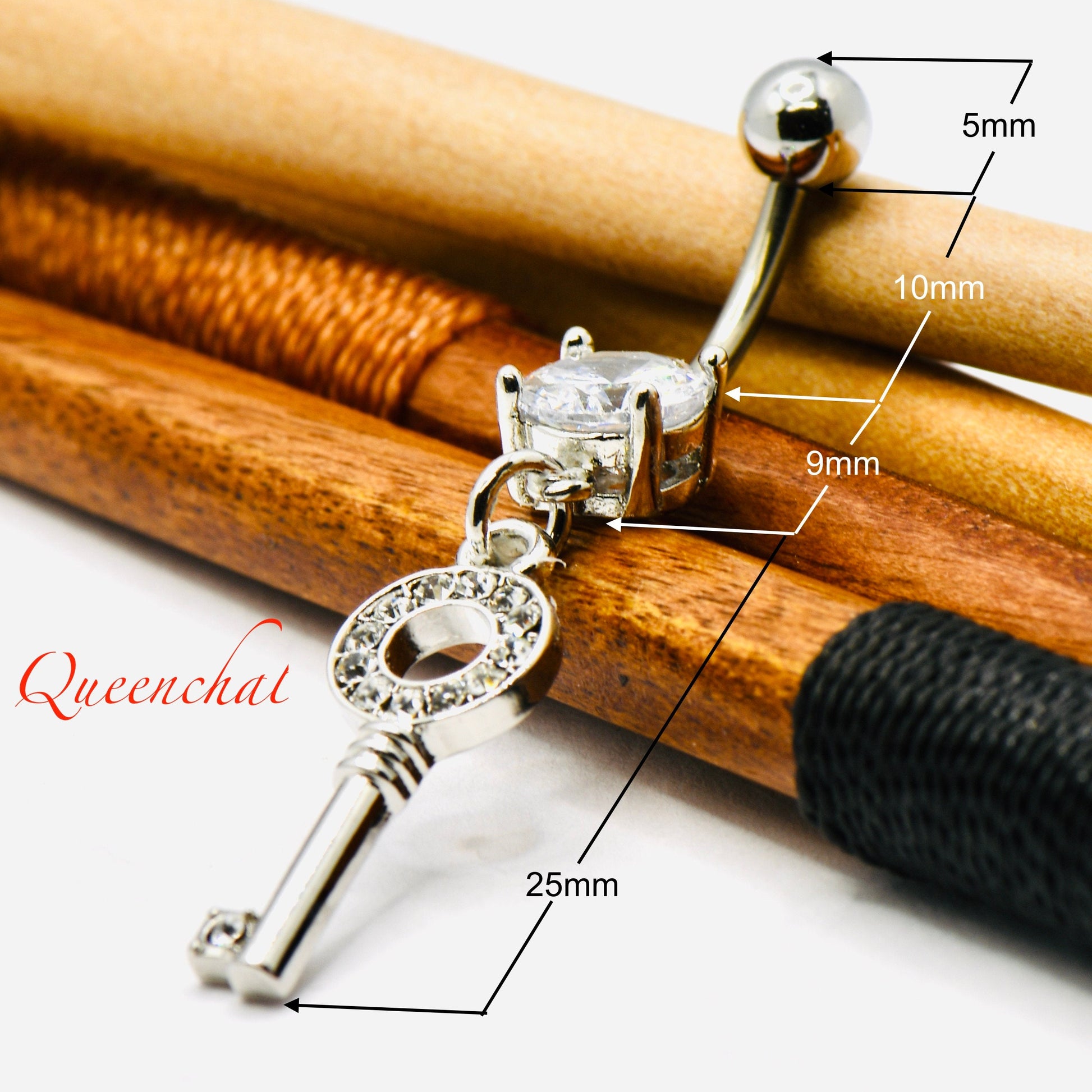 14G 326L Surgical Steel Dangling Key Navel Ring Belly Bar Button Piercing Jewellery